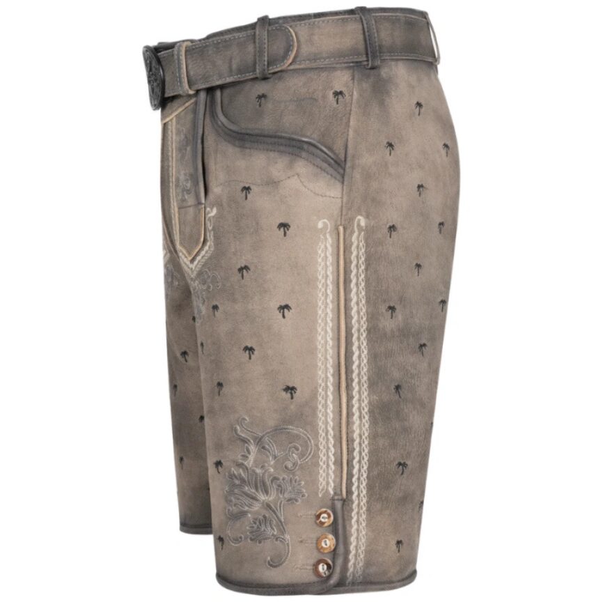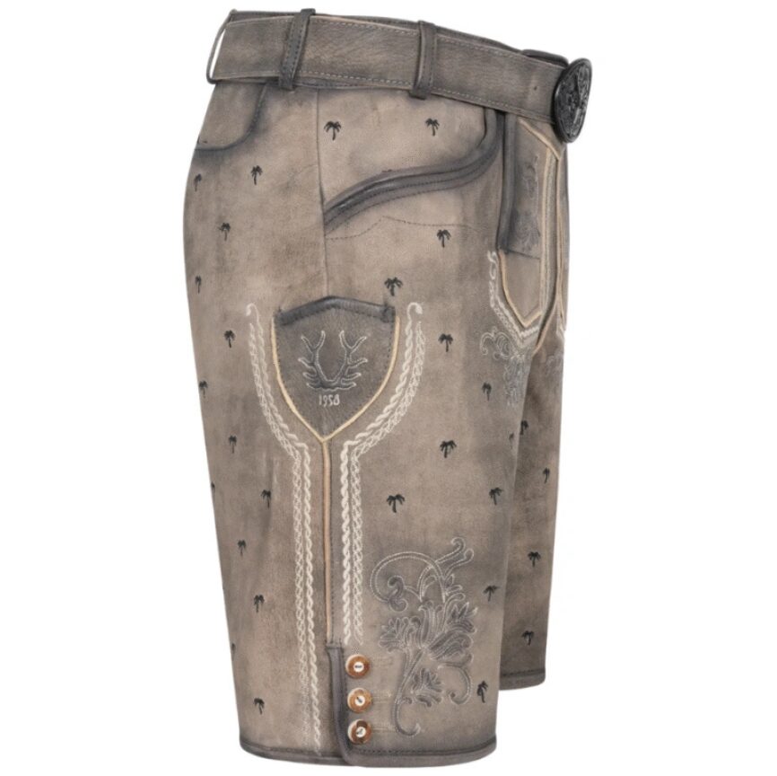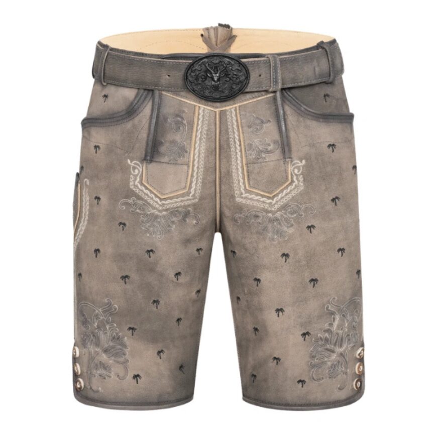 Stand out with the Dusky Highlands Lederhosen. These traditional leather shorts combine Bavarian charm with a fun and unexpected twist—palm tree embroidery. They’re the perfect choice for Oktoberfest, folk festivals, and themed events where you want to bring tradition with personality.