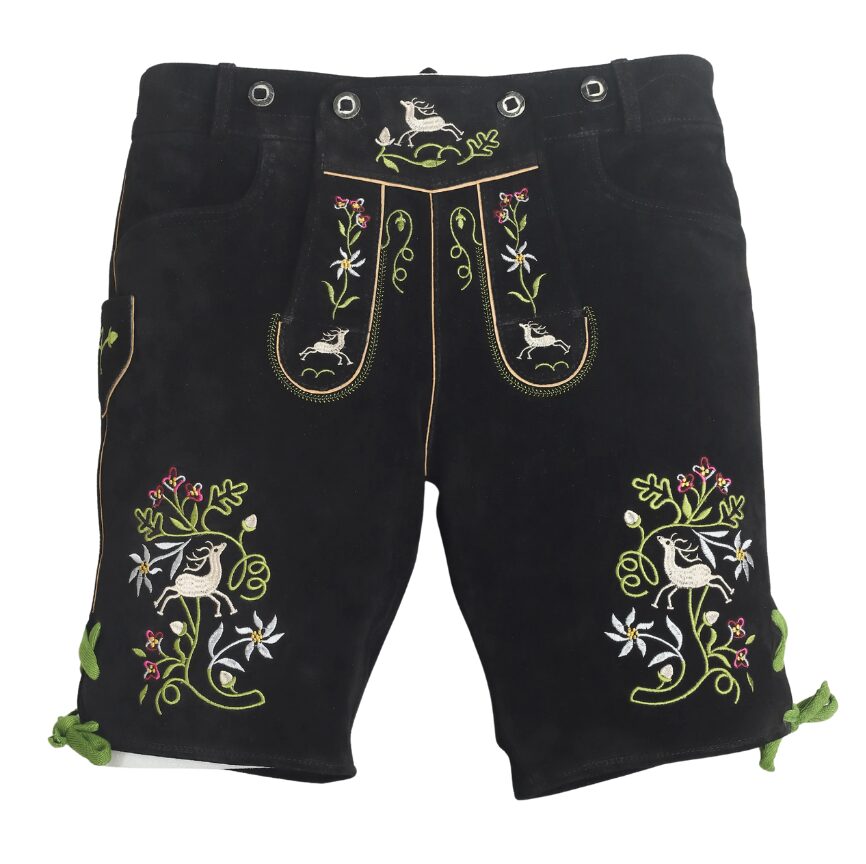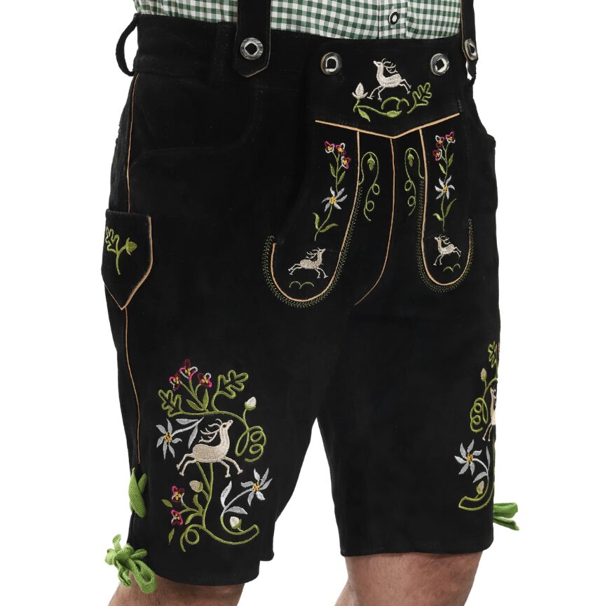 After you’ve measured your height and other body dimensions, refer to the size chart provided with each product. Each size lists a corresponding side length, which indicates the total length of the lederhosen. By comparing these with your own measurements, you can select the lederhosen length that suits you best. Even better—you’re not limited to the standard chart; you can request a custom side length for your lederhosen. At thelederhosen, we specialize in creating made-to-measure designs tailored to your preferred fit.