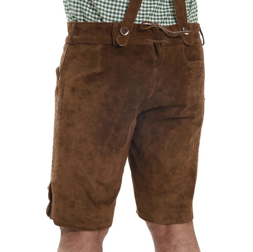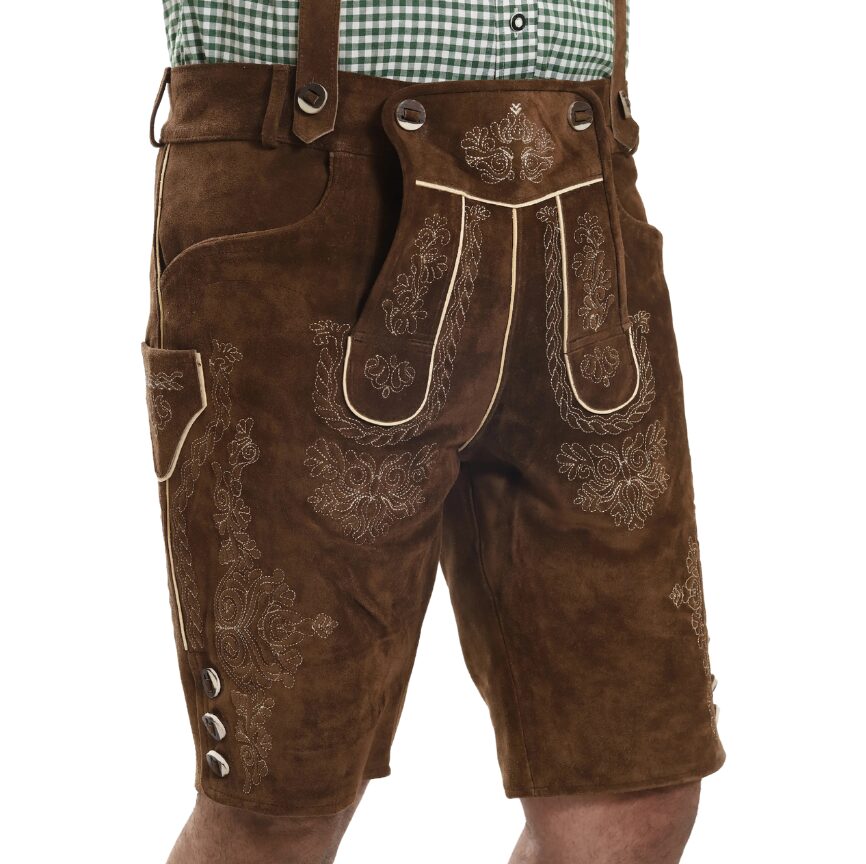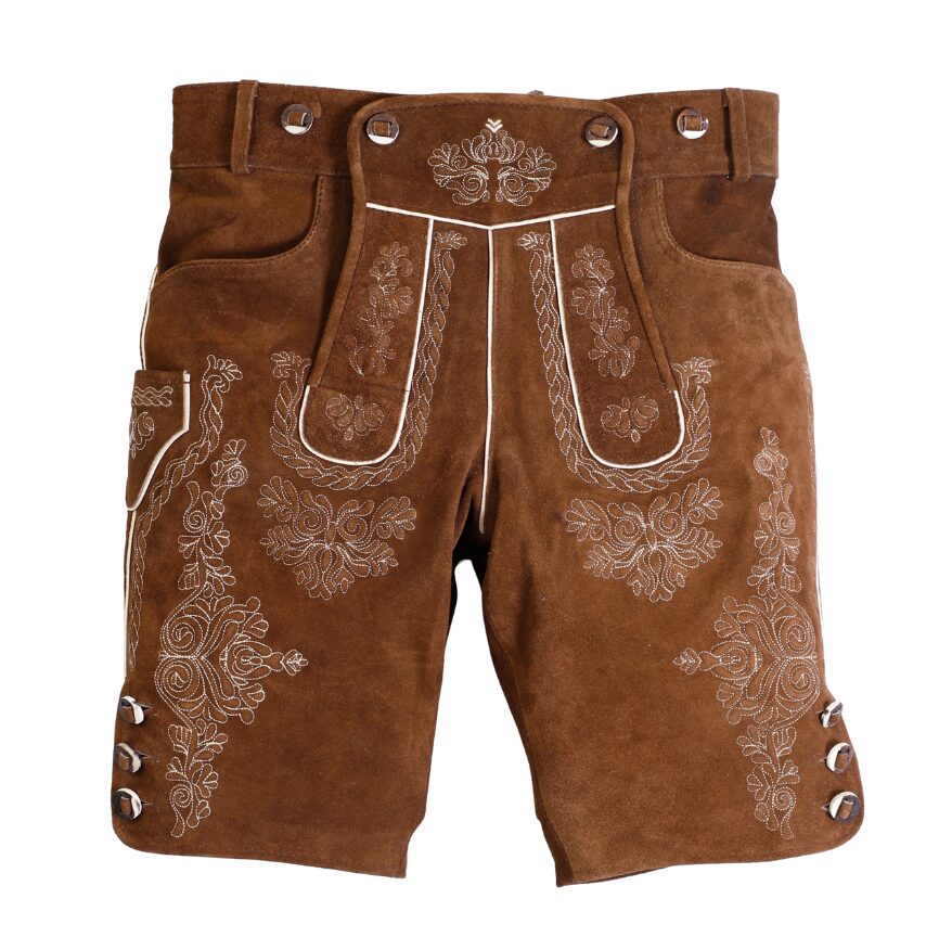 After you’ve measured your height and other body dimensions, refer to the size chart provided with each product. Each size lists a corresponding side length, which indicates the total length of the lederhosen. By comparing these with your own measurements, you can select the lederhosen length that suits you best. Even better—you’re not limited to the standard chart; you can request a custom side length for your lederhosen. At thelederhosen, we specialize in creating made-to-measure designs tailored to your preferred fit.