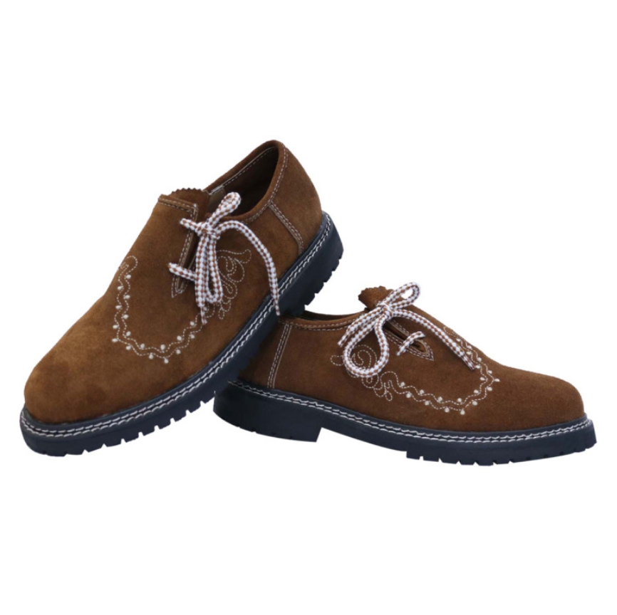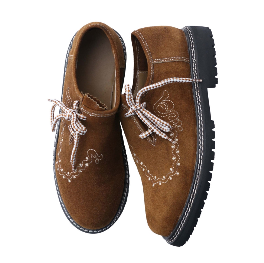 The Alpine shoes feature a soft brown suede finish, classic lace-up closure, and hand-stitched detailing. They pair effortlessly with Lederhosen, bringing a rustic, timeless touch to your festival outfit.