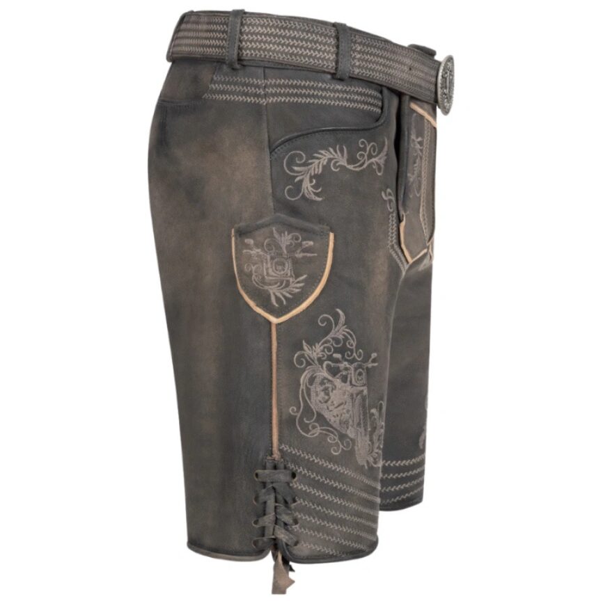The Vintage Charcoal Lederhosen redefines tradition with a contemporary edge. Designed for the fashion-forward man, these embroidered leather shorts are a stylish choice for Oktoberfest, alpine events, or everyday standout wear.
